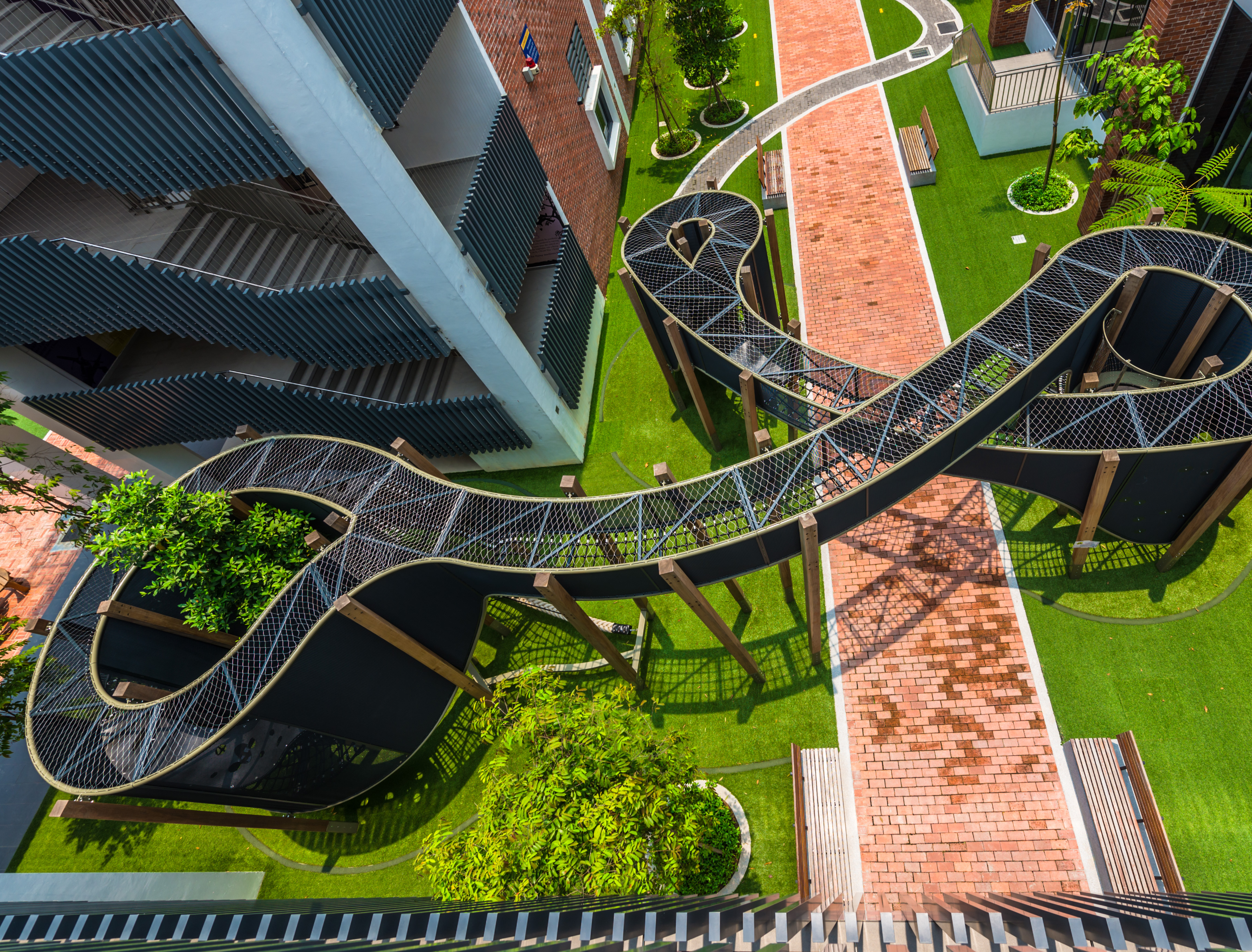 Play Curl is an elevated, nature-inspired play zone whose translucent, flowing form shelters yet reveals a realm of adventure. Children enter at ground level, climbing into a curling canopy for vertical exploration and discovery.